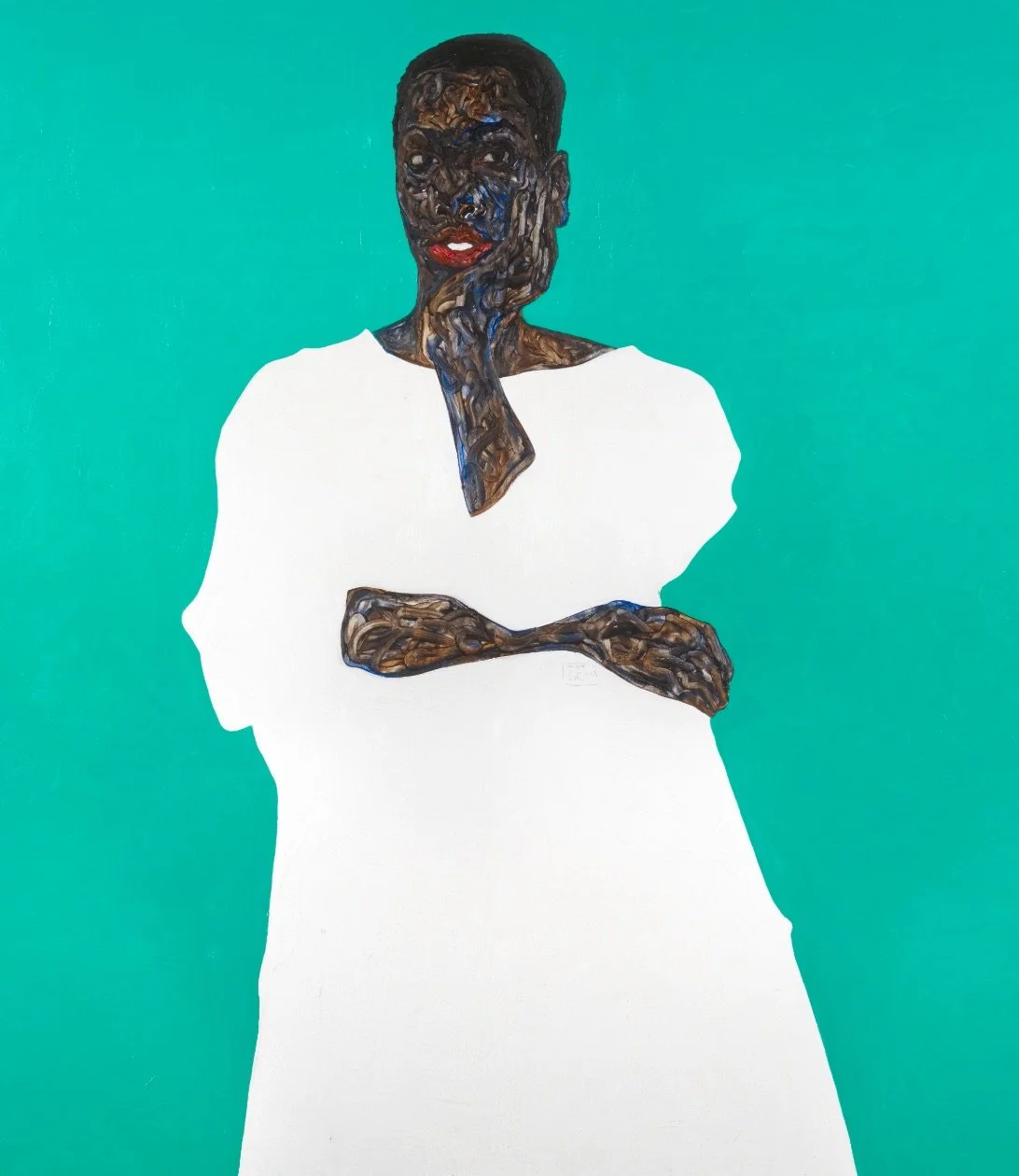 Amoako Boafo reimagines the canon of portraiture, emerging as a key artist in defining the contemporary culture of Africa and the African diaspora. His elegant paintings elevate his subjects, capturing their confidence, style, and character. To depict the figures in his portraits, Boafo manipulates pigment with his fingers rather than with a brush, tracing gestures through direct touch.